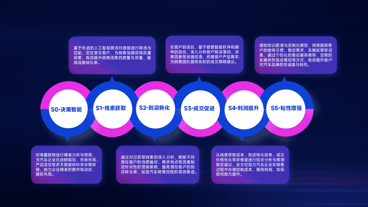 通过拓宽潜在客户来源、、、优化线索分配并提高到店转化率,,,以增强销售效率。。同时,,利用线索数据不断优化分析模型,,,有效提升转化率,,扩大营销影响力。。